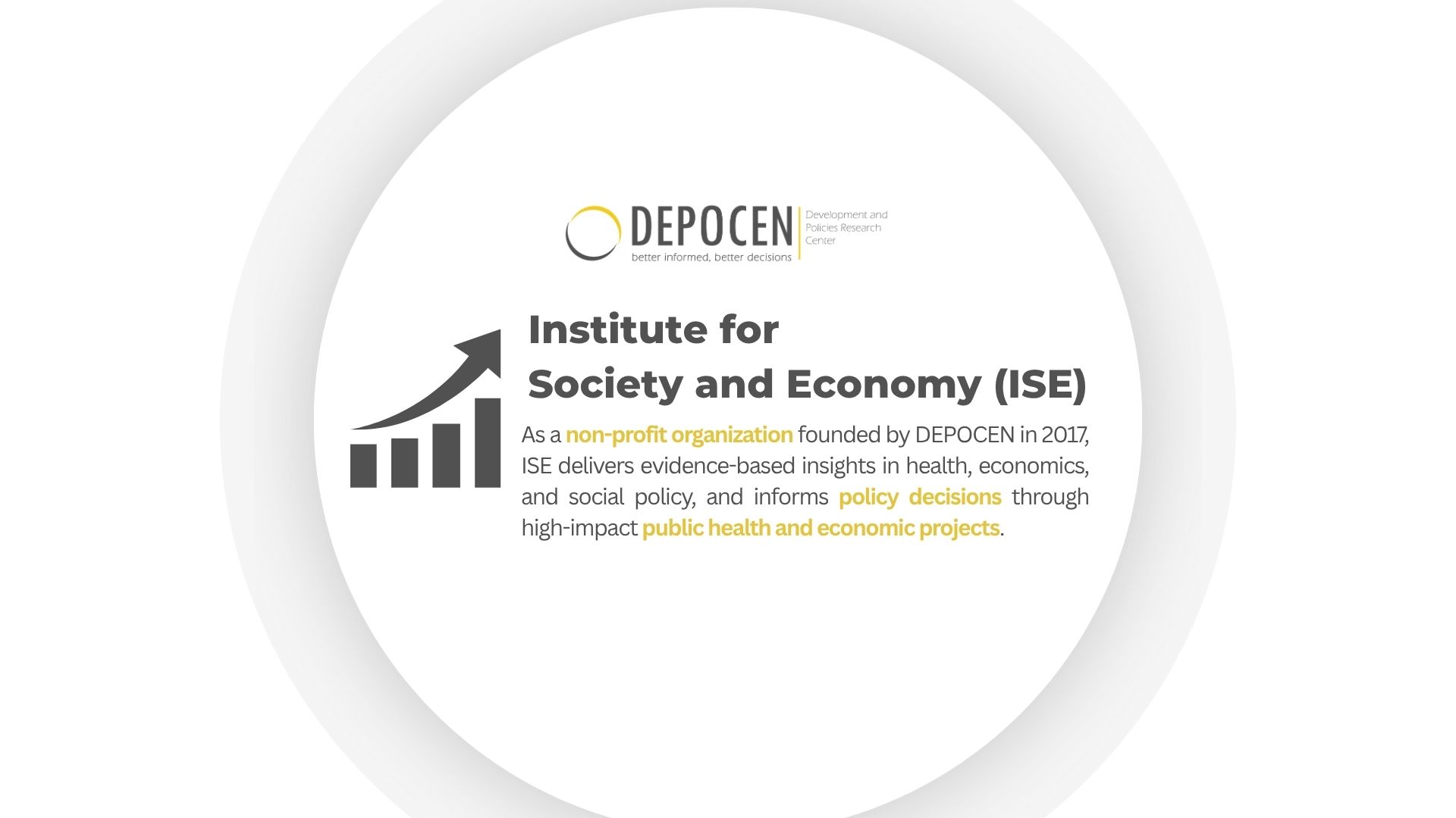 The Institute for Society and Economy (ISE) is a non-profit organization established in 2017 by the Development and Policies Research Center (DEPOCEN). Its mission is to conduct non-profit projects in health, the economy, and society, provide high-quality evidence to inform policy decisions, strengthen regulatory frameworks, and advance public health. ISE has now gained a reputation in policy research and consultancy due to its wide range of researchers and areas of work.